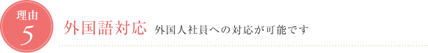 近年、外国人の従業員を採用する企業も増加傾向にあり、語学(英語)での対応を求められるケースも増えています。当社では、語学への対応(英語)はもちろん、国による生活習慣・文化の違いなど様々な要素を理解し、対応頂ける産業医が外国人従業員の健康を支援致します。 |